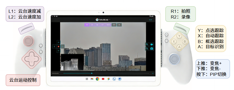 - 手柄控制:适配外接手柄操作,云台、AI 模式、媒体控制等功能均可通过手柄实现。