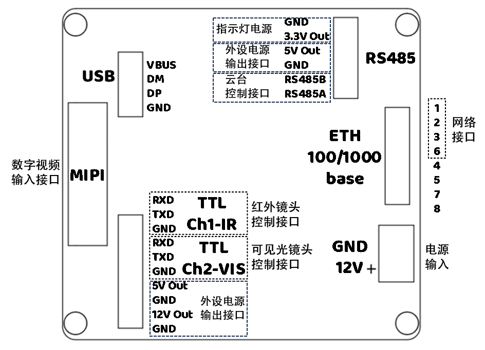 ◻️ 激光测距/激光补光接口 通过串口服务器接入网络链路中。Mini2串口服务器模块支持。